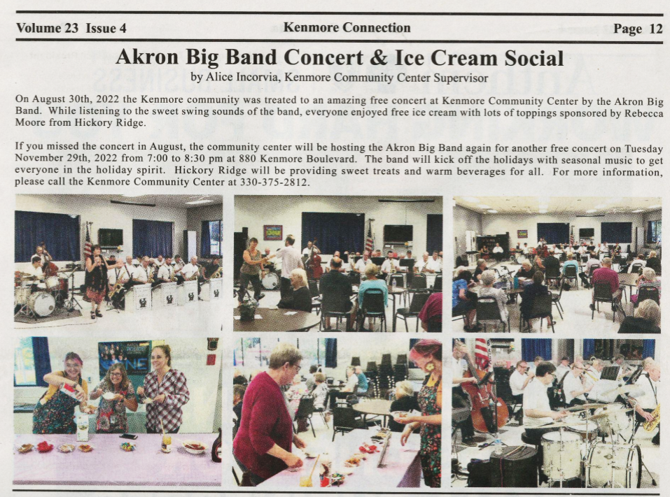 The Akron Big Band was the featured live musical event for the Metro Health Annual Gala in 2022. The band was contracted for a two set gig and was provided sound equipment by Metro Health.