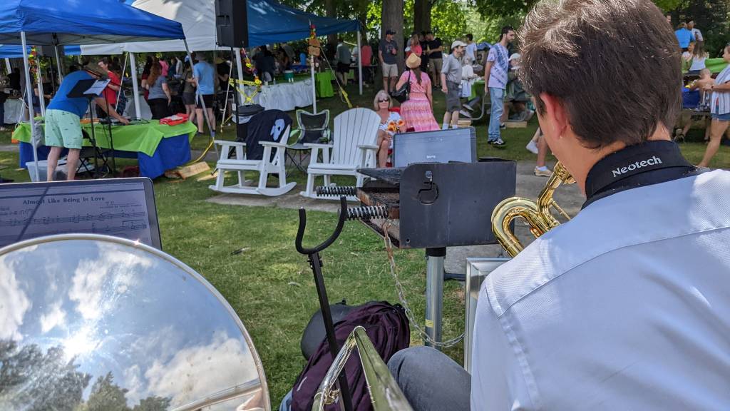 SHARON CENTER – More than 200 people turned out June 19 for the second in the free summer concert series at Sharon Circle Park to hear the popular Akron Big Band play the songs of yesteryear…