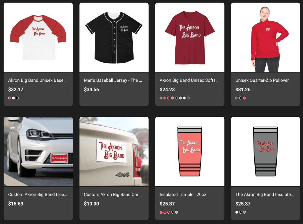 Visit our Merch Floor for Akron Big Band products! Below is just a sample of some of our merch!